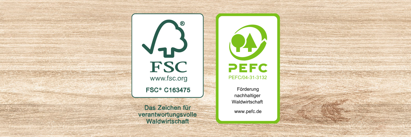 Mit FSC– und PEFC-Zertifizierungen leisten wir einen wichtigen Beitrag zur nachhaltigen Forstwirtschaft und bieten Ihnen die Sicherheit, dass unsere Produkte umweltfreundlich sowie sozialverträglich sind und den höchsten Nachhaltigkeitsstandards entsprechen. Gemeinsam können wir die Zukunft unserer Wälder schützen.
